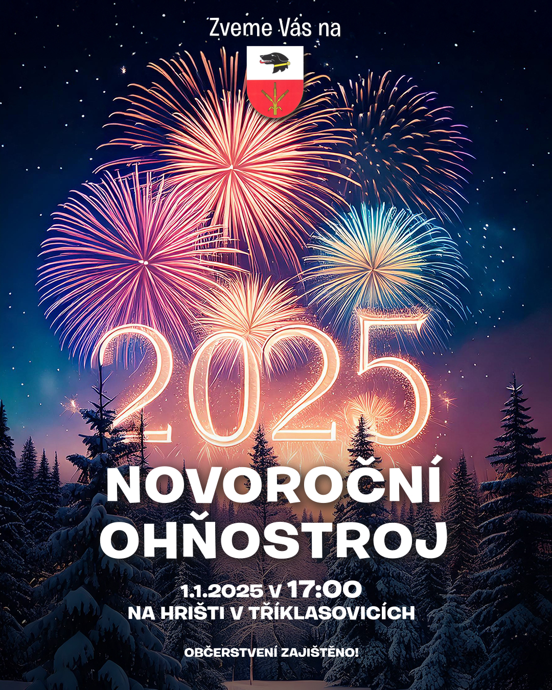 Již 3. rok se koná Novoroční ohňostroj na hřišti v Tříklasovicích od 19:00. Všichni jste srdečně zváni.